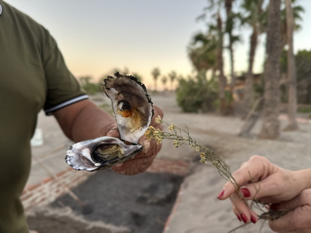 At Oasis Restaurant you can experience a traditional method of cooking known as almejas tatemadas wherein clams (or in some cases oysters) are buried in a gravel pit and dried romerillo (a local shrub) is set ablaze on top, baking them in their shells. The shellfish are then served with a tangy mustard sauce right on the beach alongside a buffet of other local dishes.